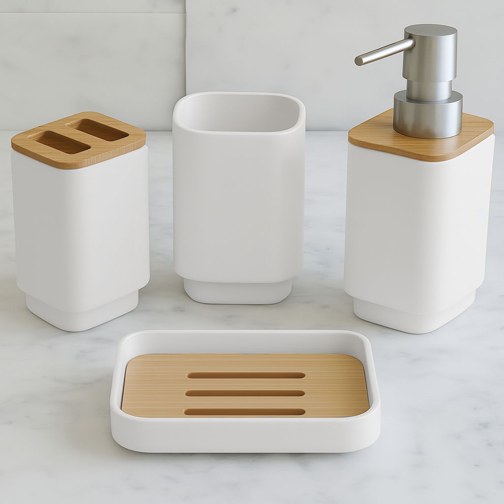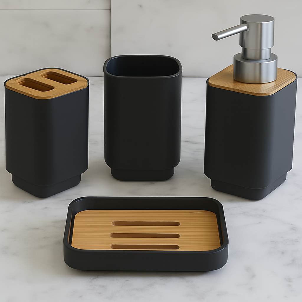 • dispenser + jabonera + portacepillo + vaso
